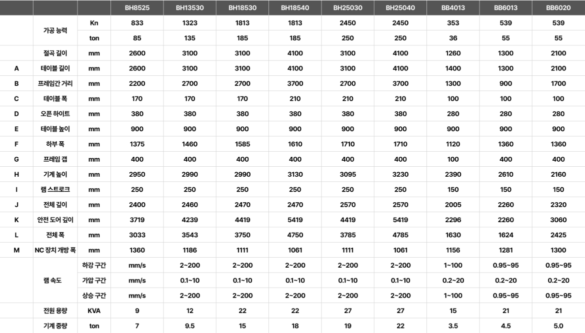 작은 프레임 갭과 고강성 옵셋 프레임의 채용으로 프레임의 틀어짐을 최소화하여 보다 높은 프레임 강성이 가능해 졌습니다. 사이드 프레임을 좌우로 최대한 넓게 함으로써 넓은 작업공간을 확보하고 기계의 전체 길이에 걸쳐 백게이지를 유효하게 사용할 수 있도록 하였기 때문에 금형 배치가 쉽고 스텝 절곡도 쉽게 할 수 있습니다.